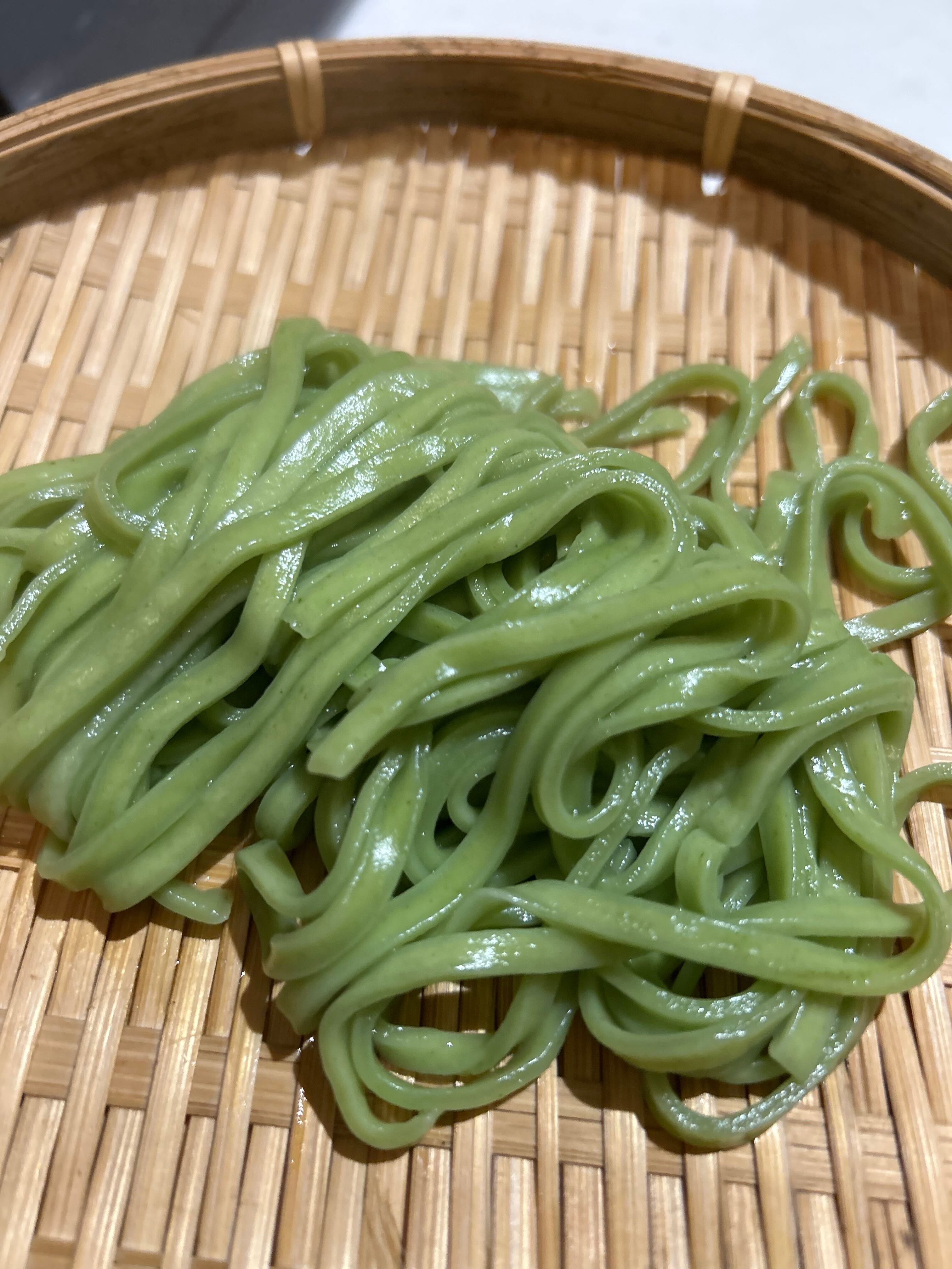 きれいなグリーンの彩りとつるつる食感が特徴の細めうどん。いつもの食卓をグッと素敵にしてくれます。